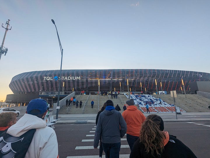 Until today I wasn’t aware Cincinnati even had a soccer stadium, but I was impressed, it was a very modern one very similar to those you see over in Europe. It was a clear night but the temperature was 38 degrees and dropping, I put in my headset and called the game action as Cincinnati FC, a heavy favorite, defeated their opponent 4-0.